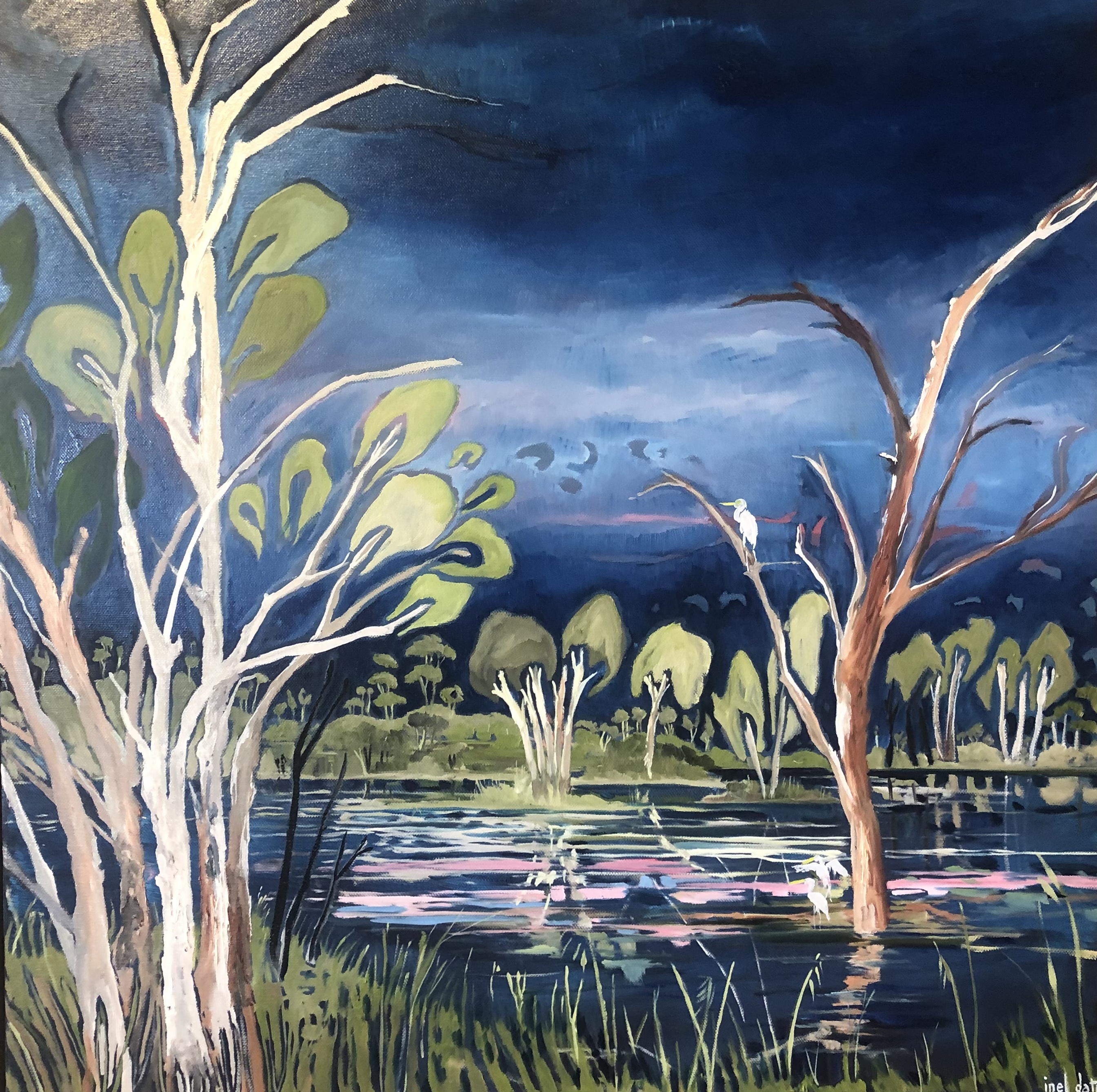 A new year with lovely fresh beginnings. A new Riparian series has dropped and is still developing in the studio. A large triptych is complete and has started the drying process. Works are on exhibition in the little magpie gallery in Cowra. I am currently working towards a group exhibition mid-year at The Moree Gallery in Moree called Inside Out.