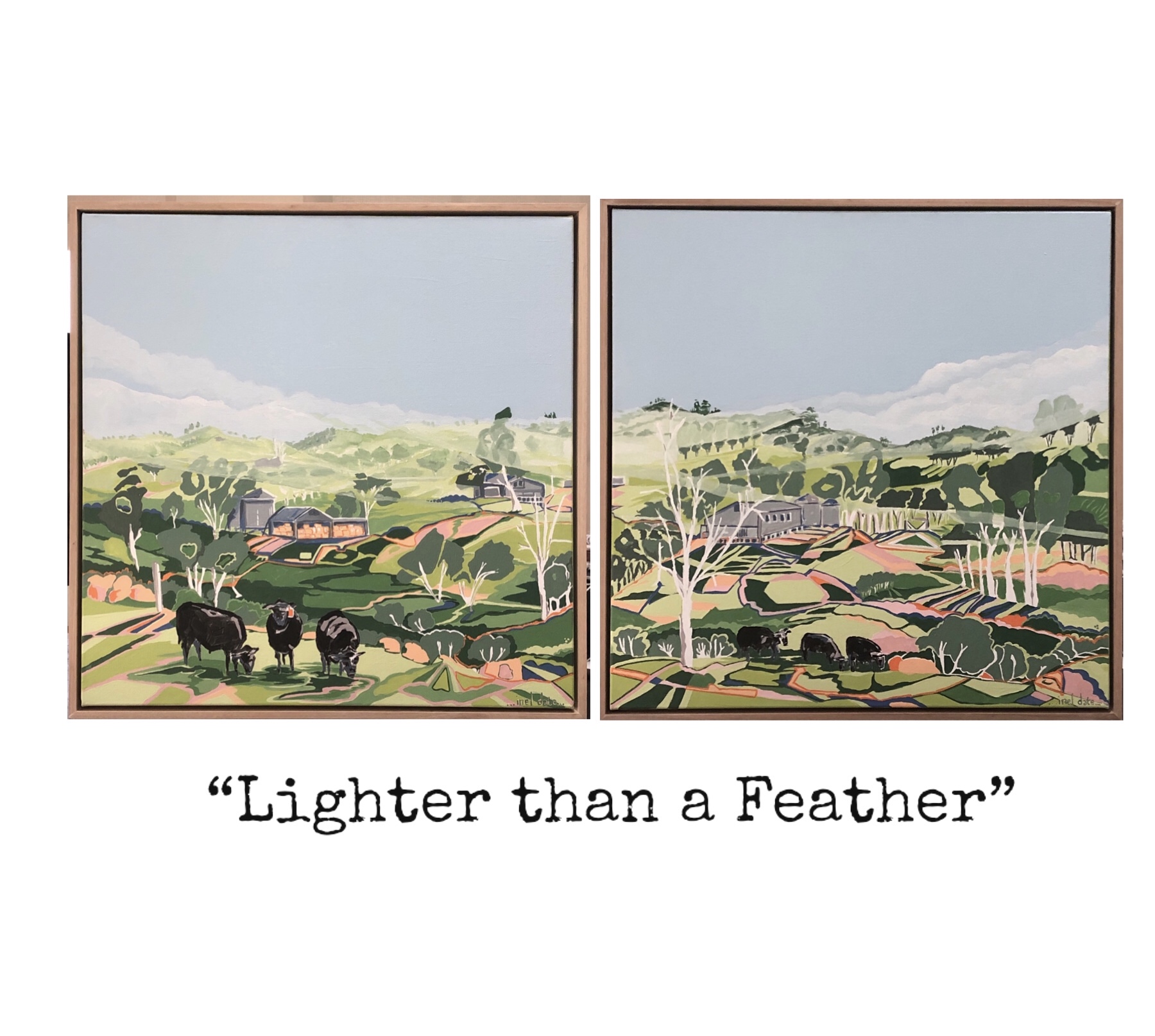 This series was painted in the winter of 2020. A foggy winter morning with a gorgeous clear day beckoning over rural NSW. The landscape is represented in fragmented geometric shapes with pattern and rhythmic lines creating sinuous movement and a play of colour.